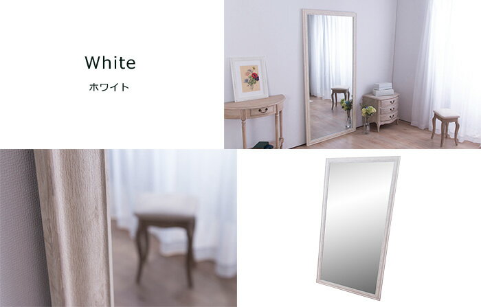 全身をくまなくすっぽり映すワイド90cmのジャンボミラー シャビーシックなウッドデザインで雰囲気あるお部屋へ ミラーの視覚的効果で新しい空間が生まれ、お部屋をより広く 壁に立てかけるタイプだから場所を取らずに省スペース ぴったりのミラーが見つかる2サイズ×3カラー