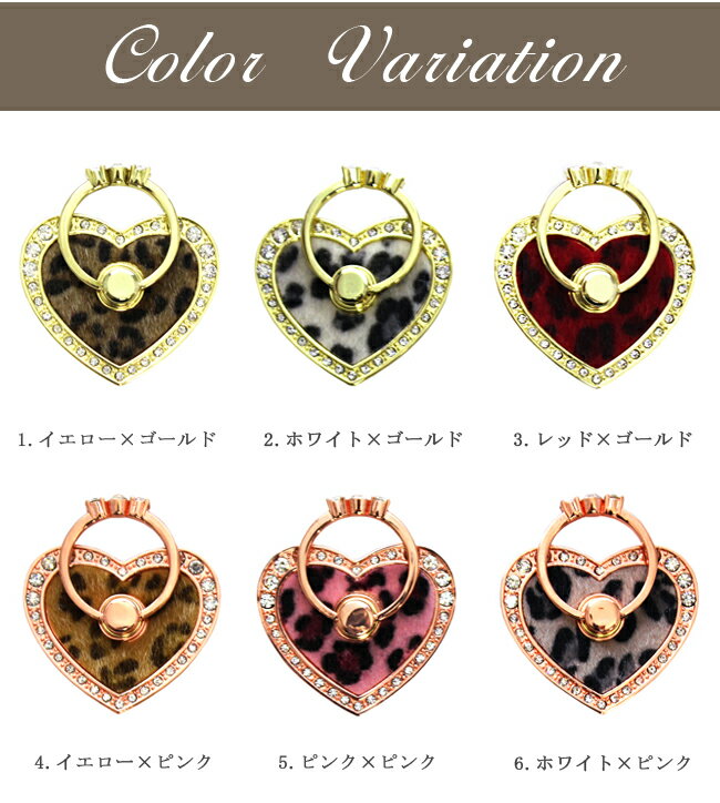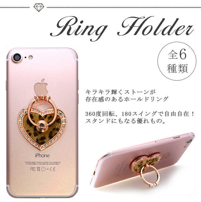 バンカーリング リングスタンド リングホルダー レオパード柄 ハート ストーン 全6種 スマートフォン タブレット スマホリング 指輪型 スタンド機能 ホルダー