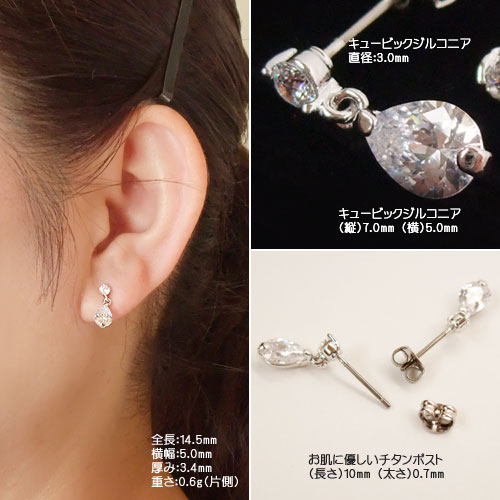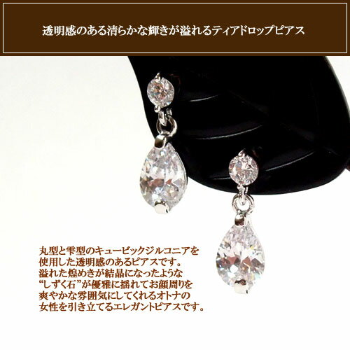 商品詳細 商品説明 ラウンドカット、ペアシェイプカットのキュービックジルコニアを使用したドロップピアスです。