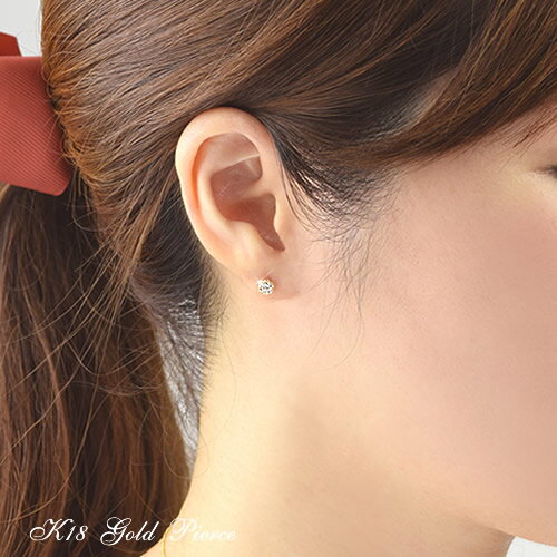 セカンドピアス 18金 ピアス 18k スーパーキュービックジルコニア スタッドピアス 直径約4.5mm (両耳用) K18 ゴールド CZ 送料無料 RCP あす楽 レディース 女性用 誕生日プレゼント 金属アレルギー 安心 福耳 ポストが太い 長い つけっぱなし コンビニ受取対応商品