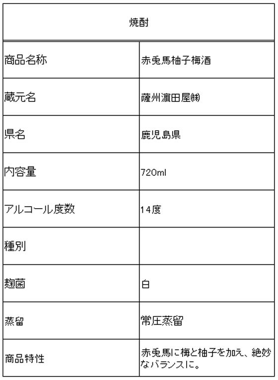 鹿児島 薩州濱田屋/赤兎馬 柚子梅酒 リキュール 14度